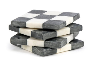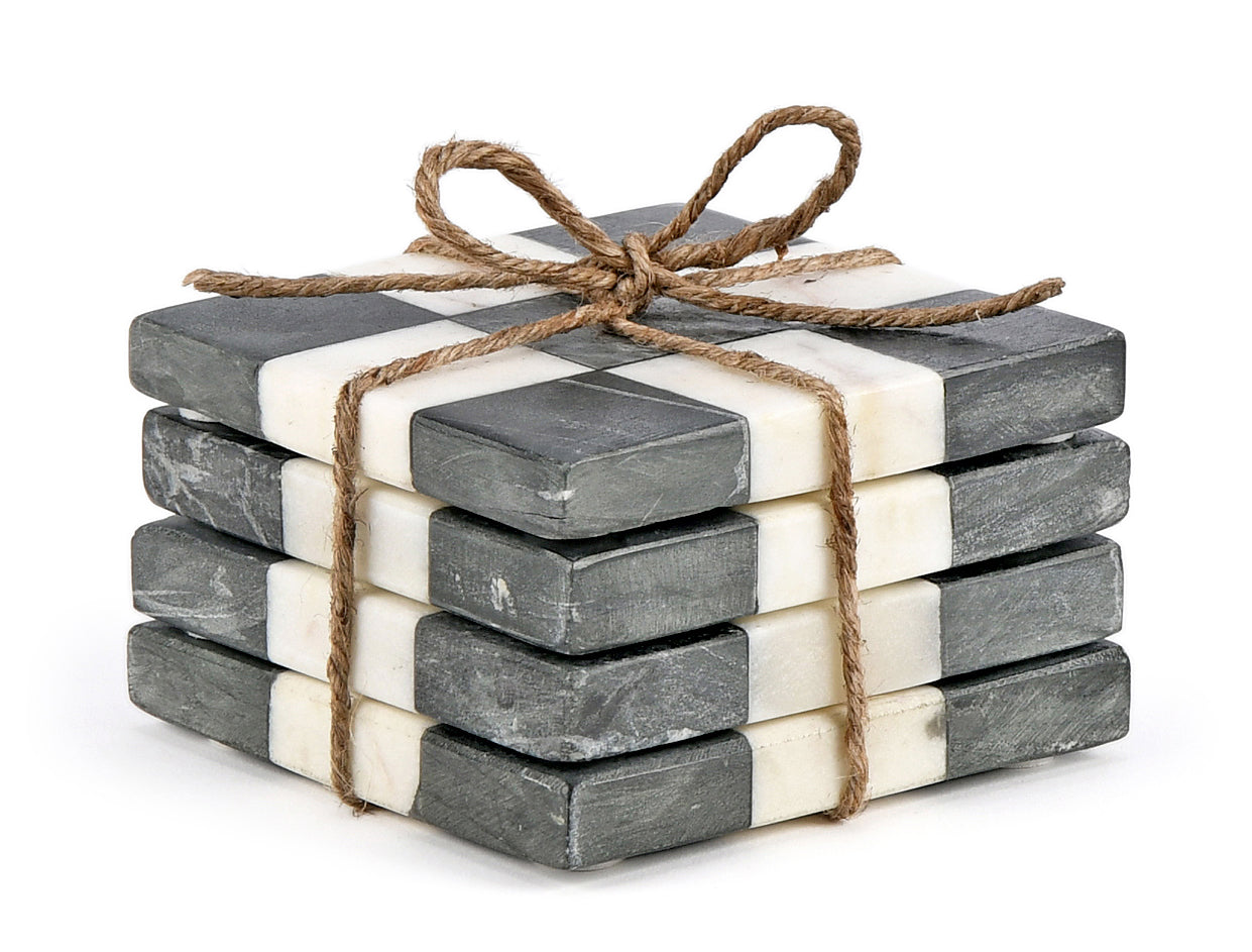 Marble coasters (set of 4) with a raised edge that slows down condensation. These coasters give the table setting a beautiful natural touch of timeless craftsmanship.