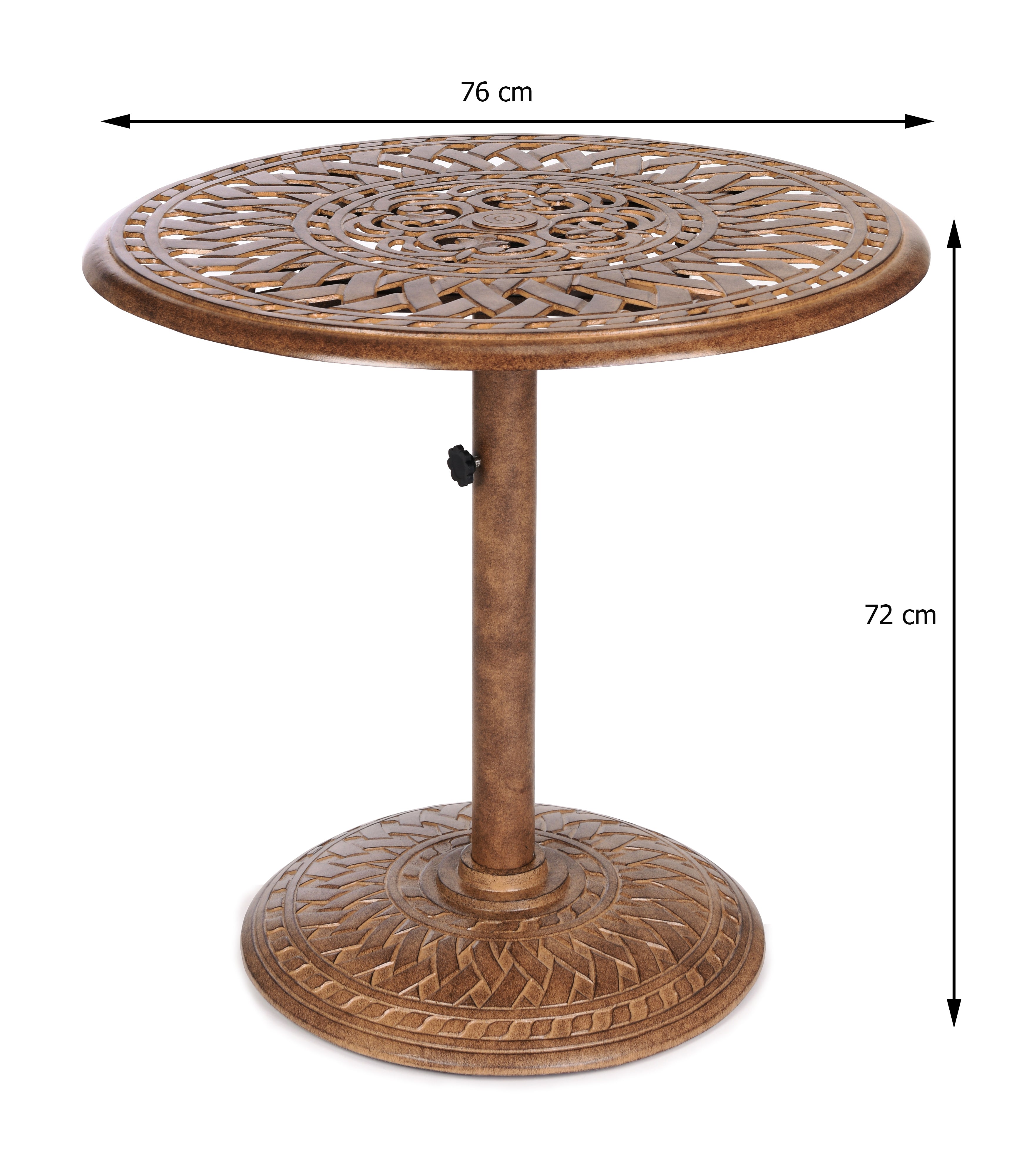Indoor & Outdoor Bistro Table. This table is Powder Coated using the newest technology. In the middle of the table top is a hole prepared for Parasol. This product belongs to the supreme quality of Outdoor furnitures.