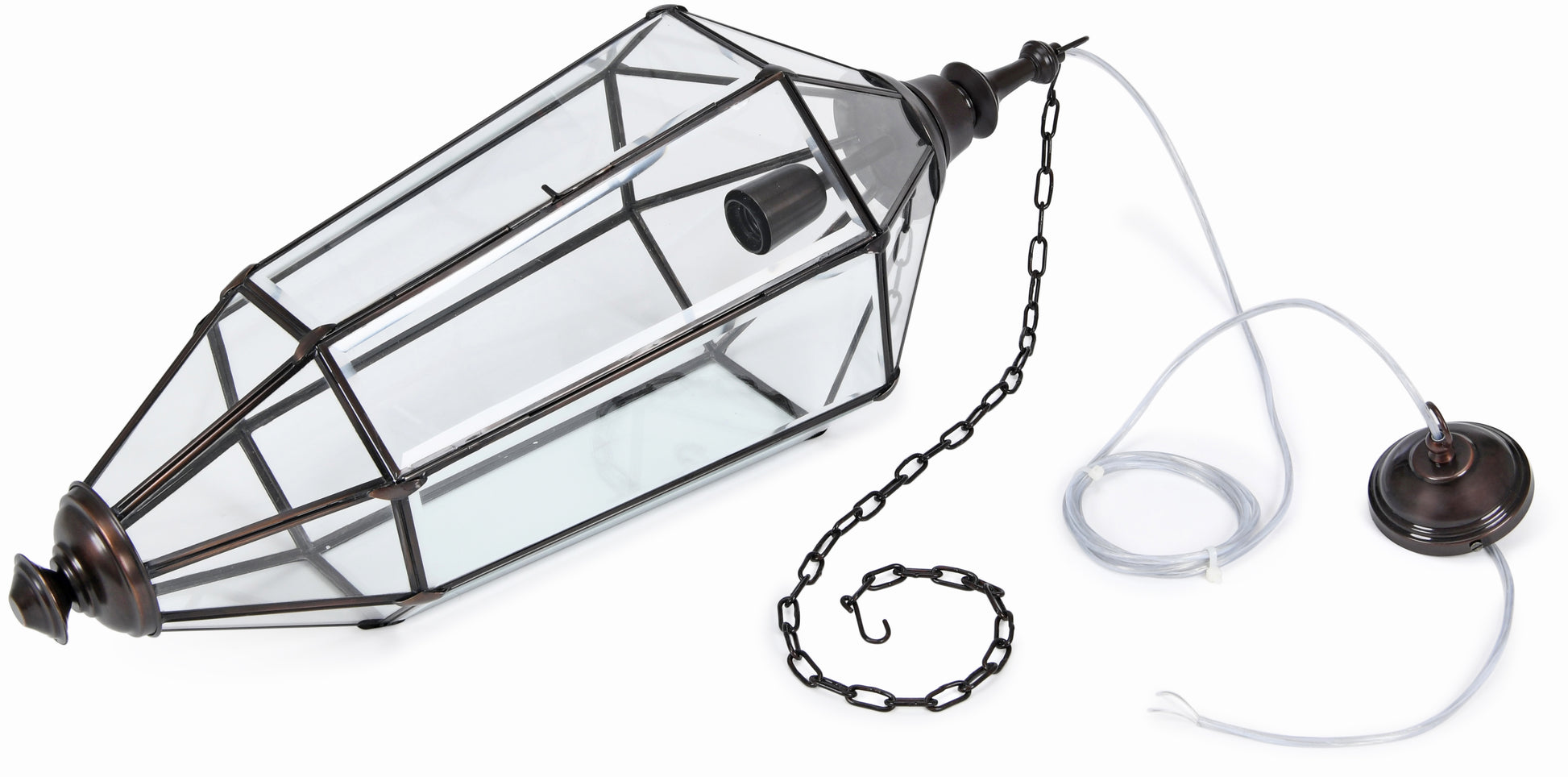 Designer pendant lamp in Contemporary style. The glass is bevelled, which gives an incredibly beautiful light. This lamp is suitable for indoor and semi-outdoor.