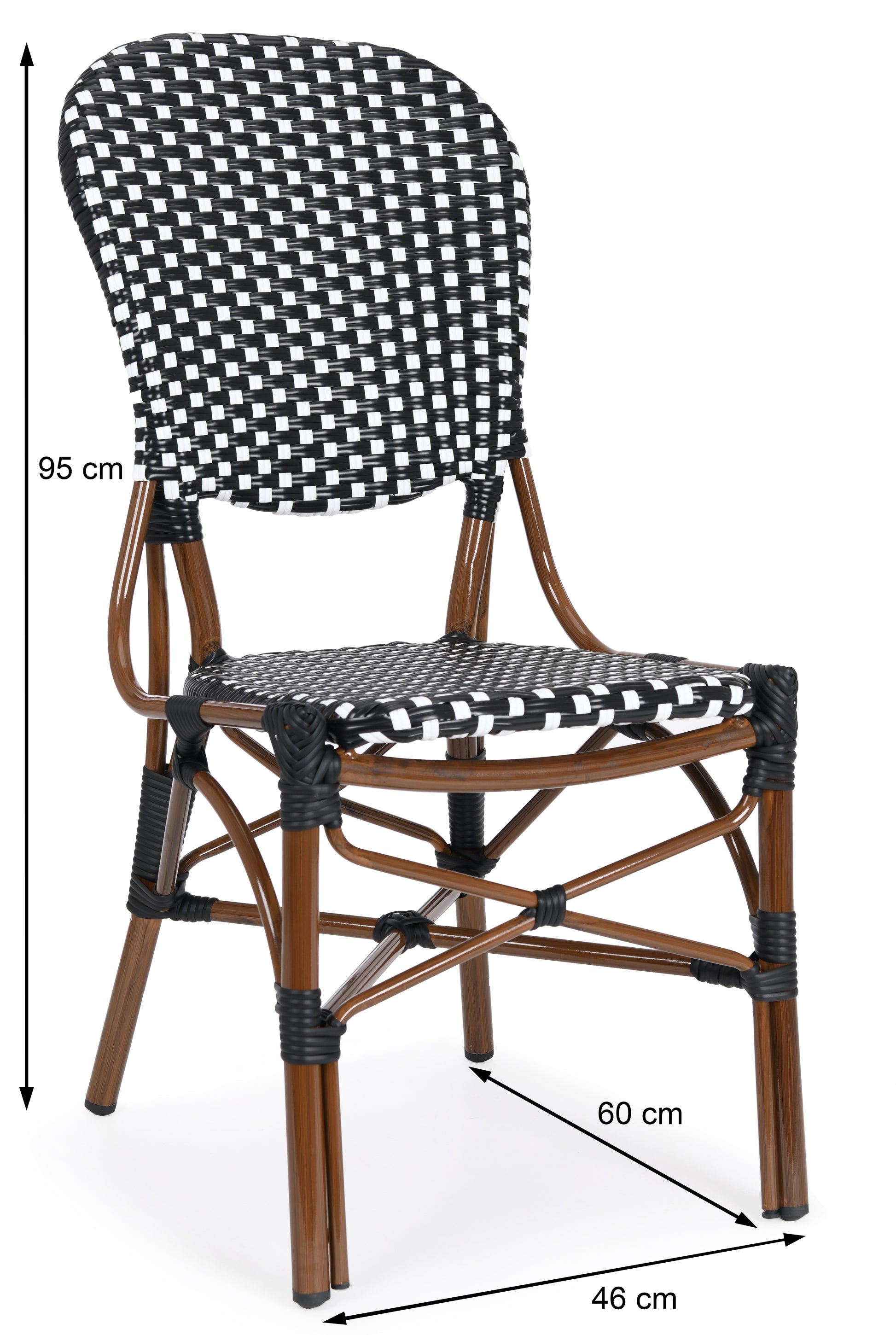 Indoor/Outdoor All-Weather Bistro Side Chair with rust free frame. The aluminium frame is powder coated using the latest technology. Weaving material is durable PE fiber. Lab tested and approved according to EU Regulation (EU)2016/217. - Permanent placement in tropical sunlight is not recommended.