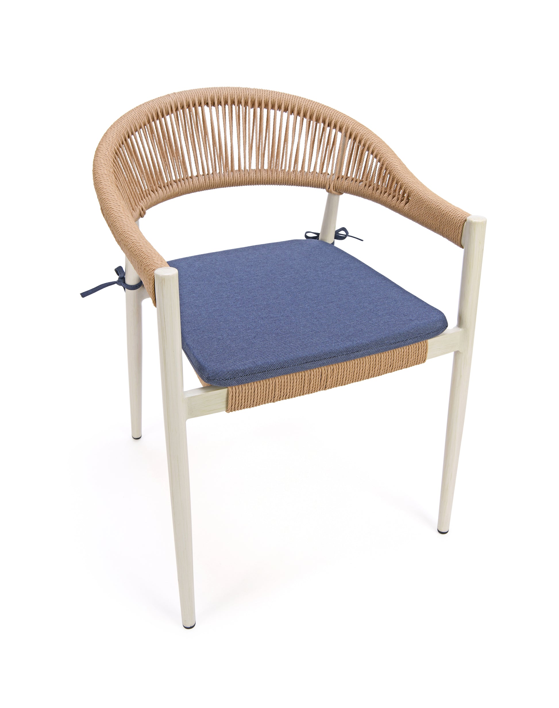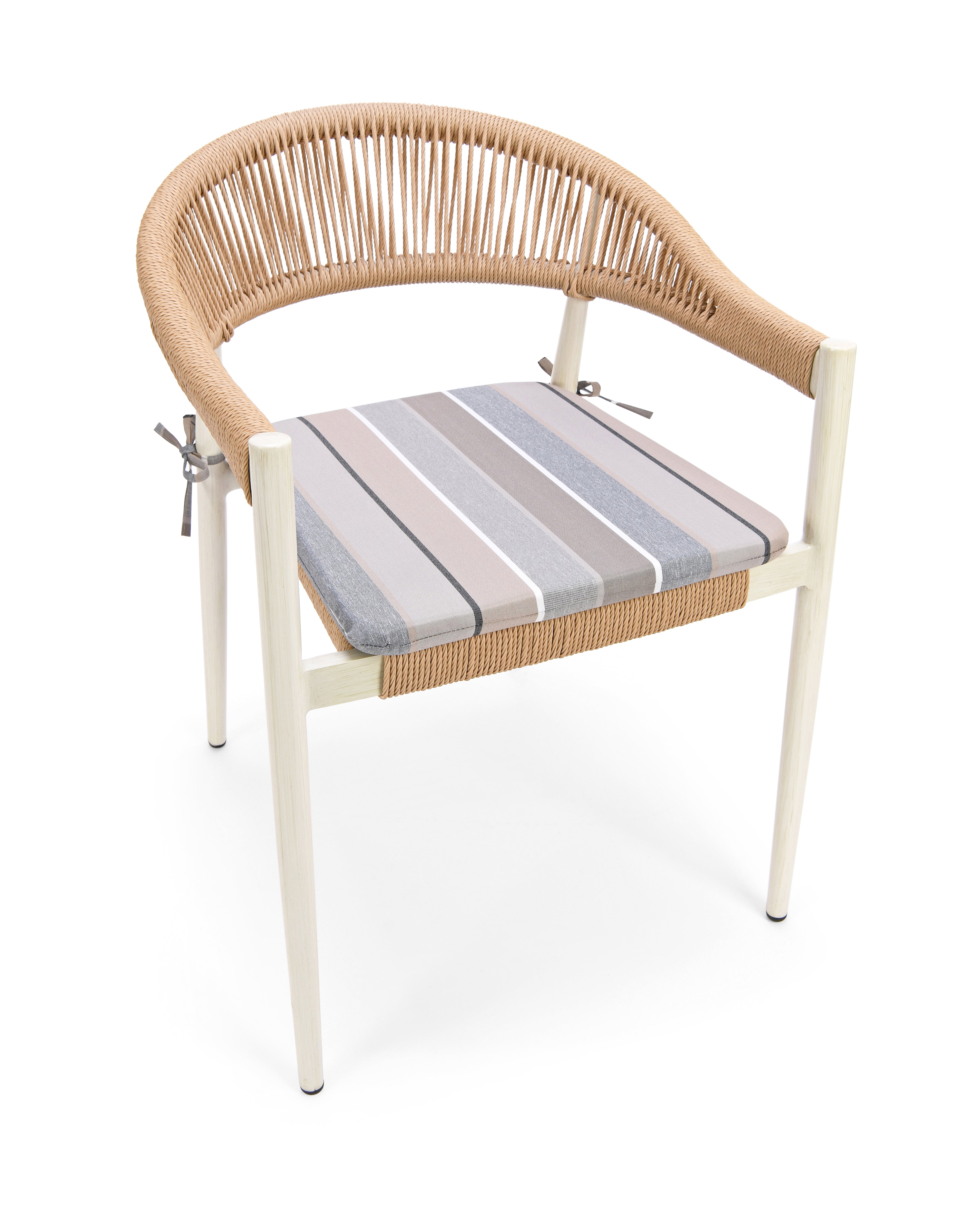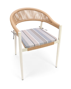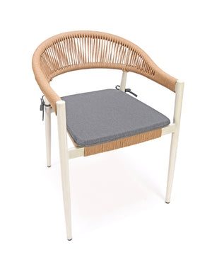 Outdoor & Indoor All-Weather Dining Armchair with rust free frame. The aluminum frame is powder coated using the latest technology. Weaving material is durable PE fiber. Lab tested and approved according to EU Regulation (EU)2016/217. RUSTPROOF. Powder Coated. Tube Diameter 32 mm Tube Thickness: 1.5mm. Holding up to 180 kgs. UV resistance Permanent placement in tropical sunlight is not recommended.