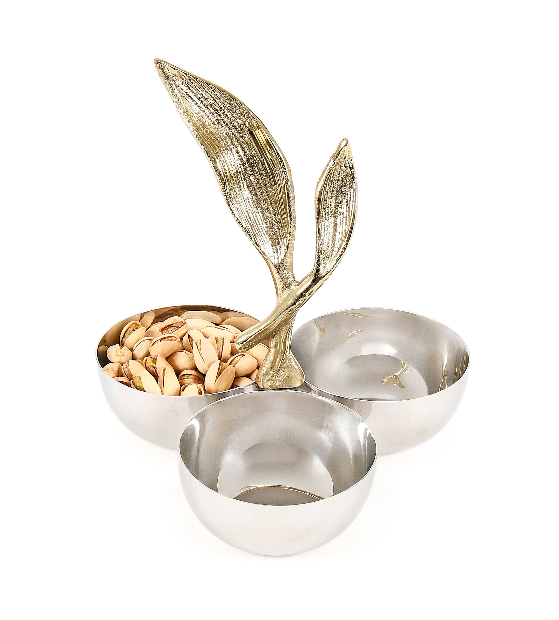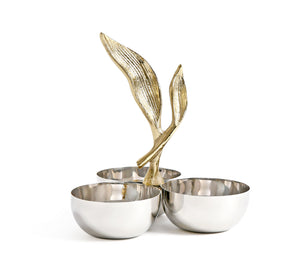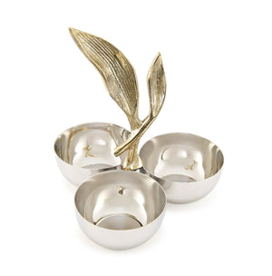 The 3 bowls Snack Server in stainless steel is suitable both in restaurants and at home.